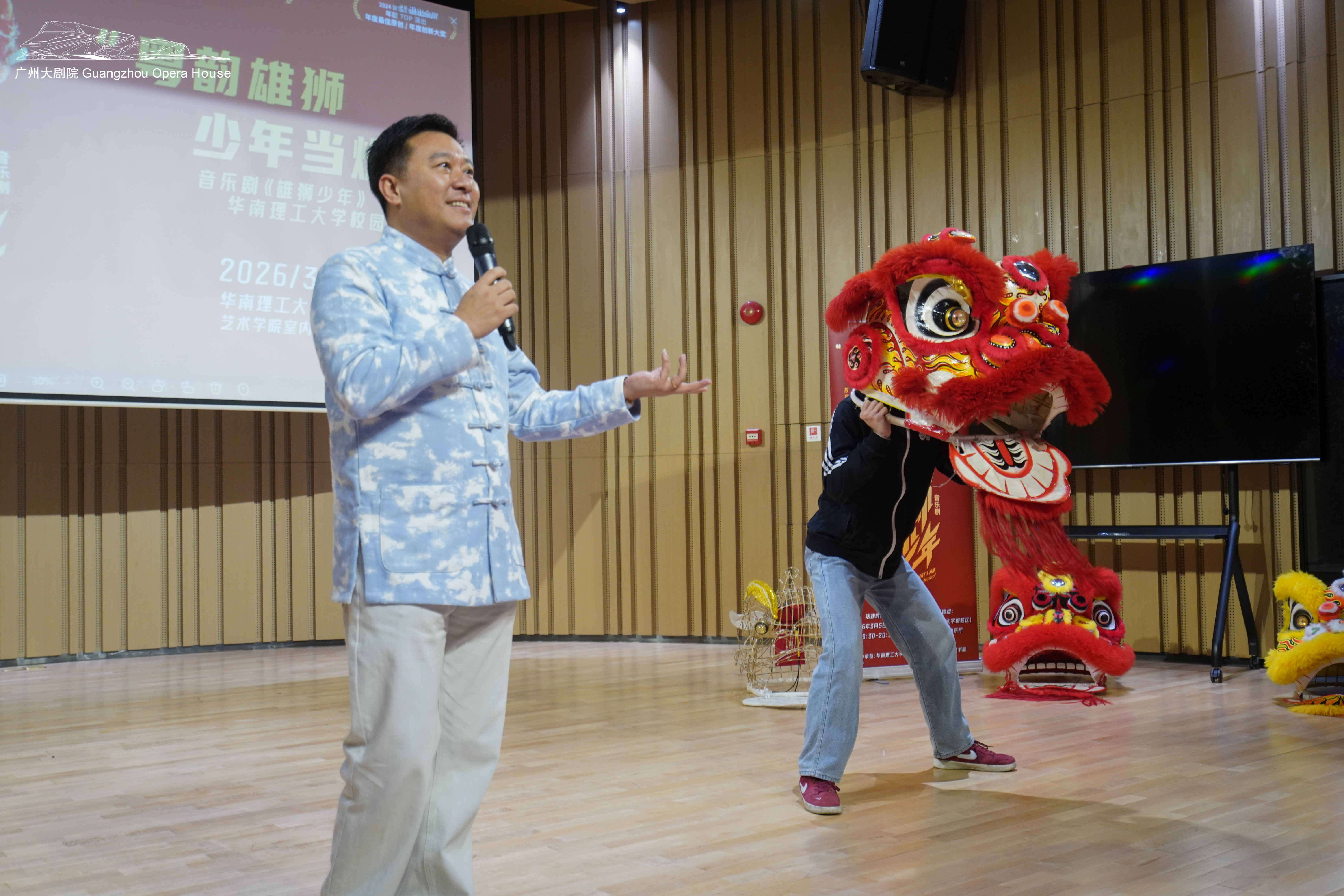 3月5日,由广州大剧院、华南理工大学艺术学院、华南理工大学国际校区峻德书院联合主办的“粤韵雄狮,少年当燃”音乐剧《雄狮少年》华南理工大学校园分享会在华南理工大学大学城校区艺术学院室内乐厅举行,旨在通过艺术展演与文化体验,搭建传统非遗与当代青年之间的桥梁。